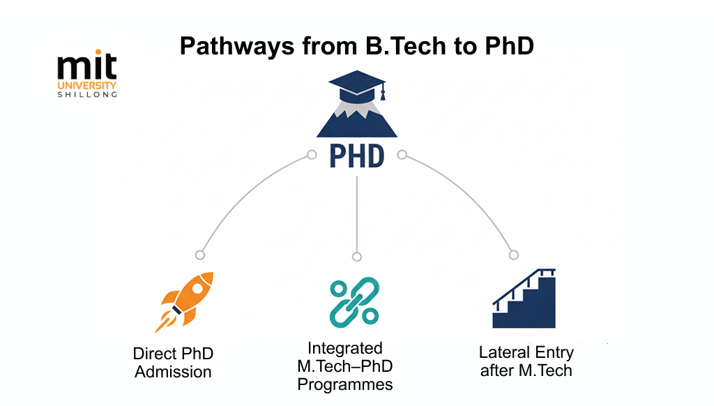 Pursuing a PhD after B.Tech can fast-track your entry into advanced research and open doors to specialised career paths. MIT University Shillong offers structured guidance, strong academic networks, and resources that help you progress with clarity. Pairing research with management studies, such as an MBA in Shillong, can further expand your professional reach.